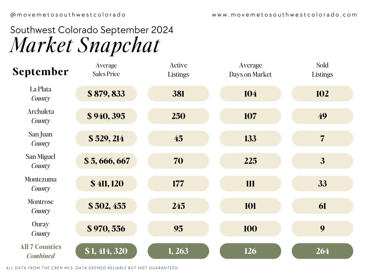 Southwest Colorado Market Update: September 2024 and Quarter 3