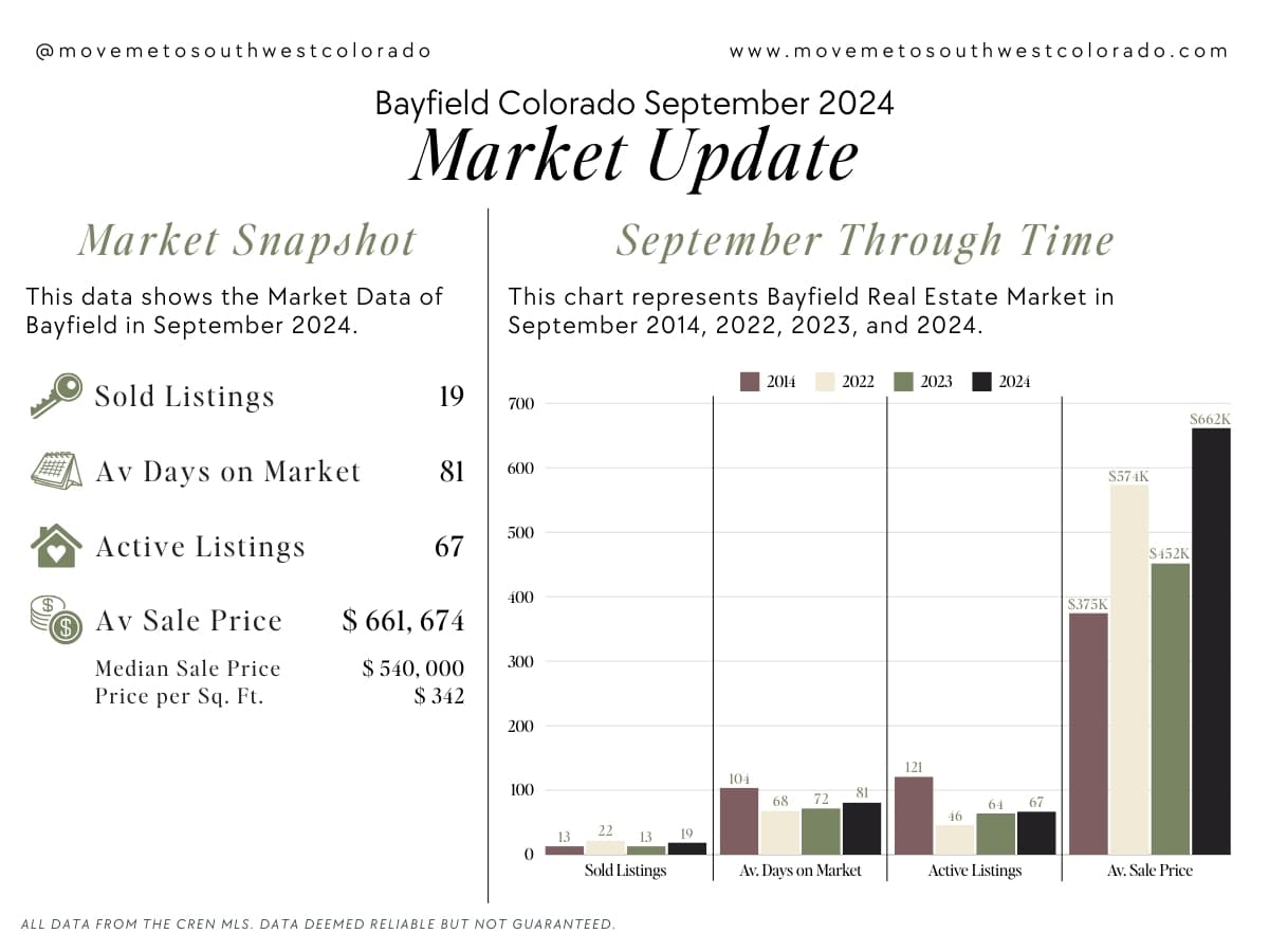 Durango continues to show strong pricing with an average sale price of $910,663. The city had 84 homes sold in September, and homes are typically on the market for 110 days. Pagosa Springs also saw steady growth, with an average sale price of $938,070, and homes on the market for 104 days. Meanwhile, Bayfield's market has seen solid price appreciation, with an average sale price of $661,674 and homes selling after about 81 days on the market.